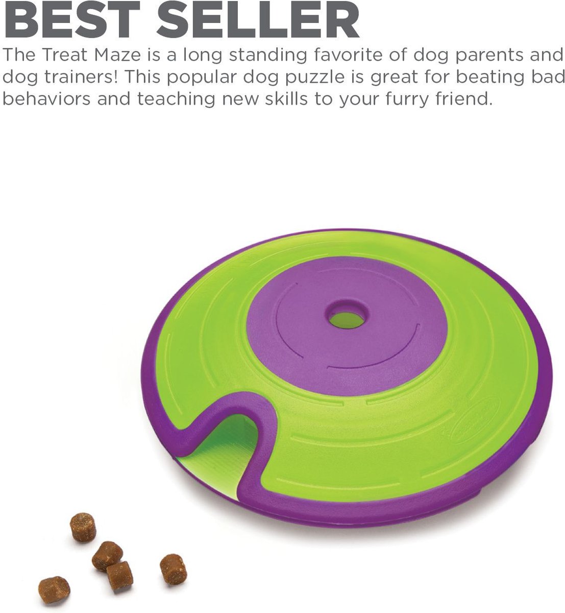 - Great for independent learning, the Treat Maze can easily be filled with treats on both sides of the saucer to exercise your dog’s mind.