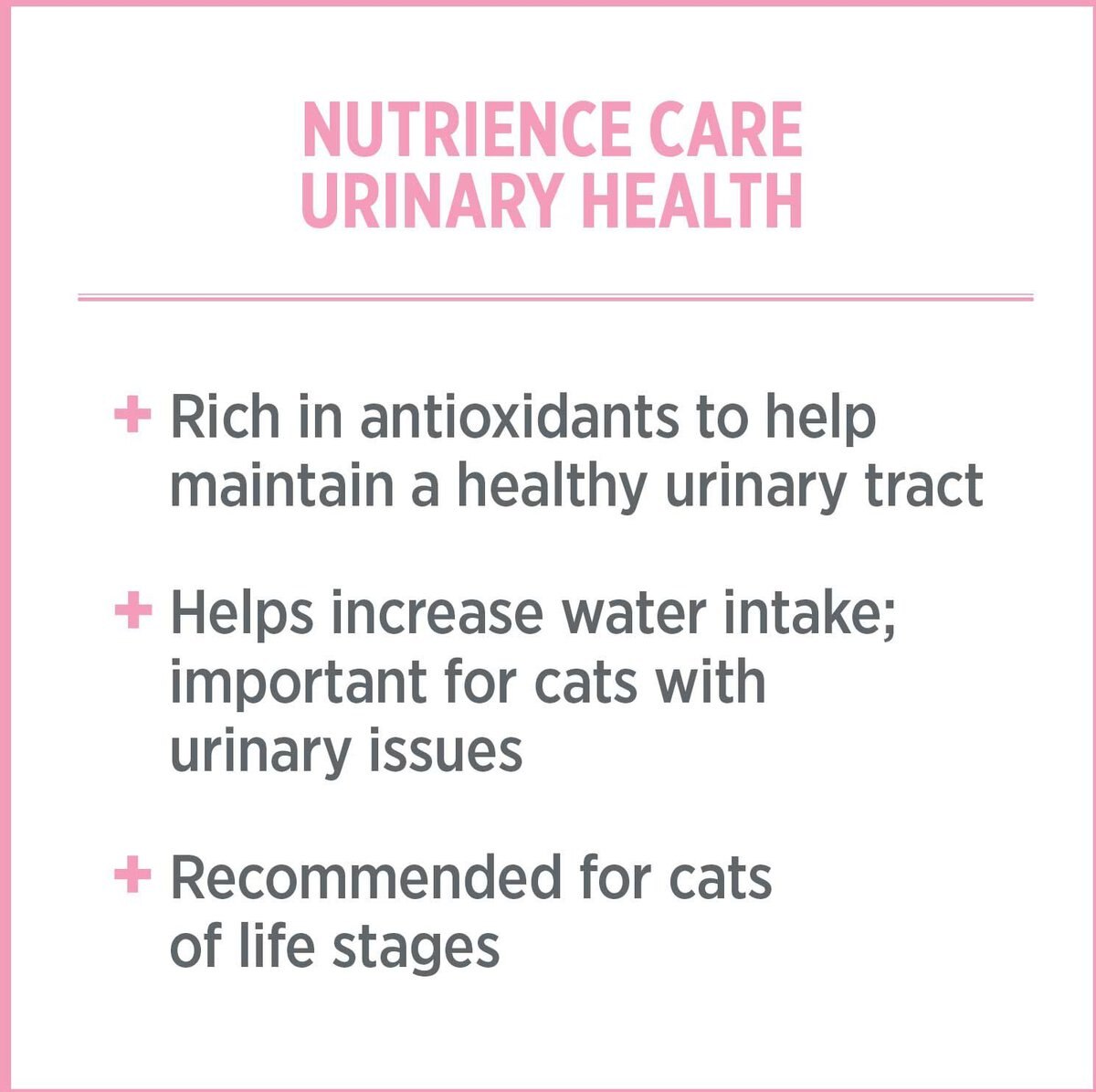 • Paw-fect complement to Nutrience Care Urinary Health Dry Cat Food (sold separately).