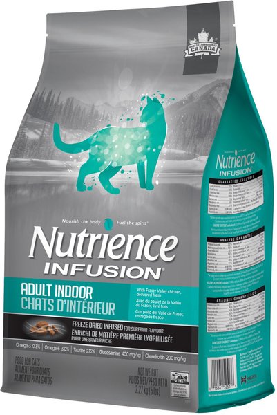 Nutrience Infusion Adult Indoor is formulated to meet the nutritional levels established by the AAFCO Cat Food Nutrient Profiles for maintenance.