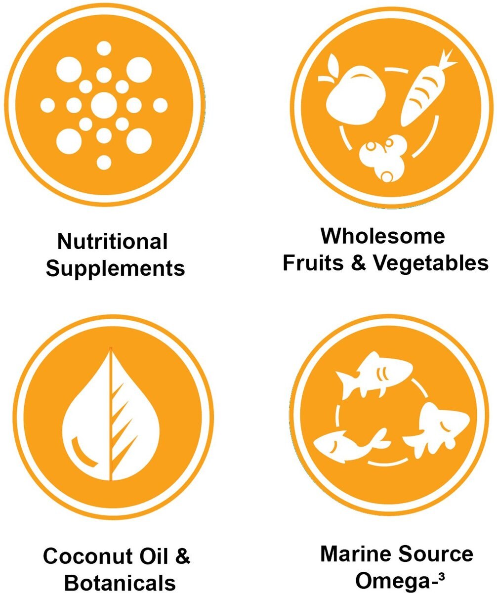Deboned Chicken, Chicken Meal, Steel Cut Oats, Pearl Barley, Green Peas, Red Lentils, Chicken Fat (Preserved With Mixed Tocopherols), Natural Chicken Flavour, Sun-Cured Alfalfa, Freeze-Dried Chicken Liver, Salmon Oil, Coconut Oil, Calcium Carbonate, Pumpkin, Butternut Squash, Carrots, Spinach, Broccoli, Apples, Blueberries, Cranberries, Pomegranate, Juniper Berry Extract, Ginger, Fennel, Chamomile, Peppermint Leaf, Licorice Root, Turmeric, Vitamins (Vitamin E Supplement, Vitamin A Supplement, Niacin, Calcium Pantothenate, Riboflavin, Pyridoxine Hydrochloride, Thiamine Mononitrate, Biotin, Vitamin B12 Supplement, Vitamin D3 Supplement, Folic Acid), Minerals (Zinc Sulfate, Zinc Proteinate, Iron Proteinate, Ferrous Sulphate, Copper Proteinate, Copper Sulfate, Manganese Proteinate, Manganous Oxide, Calcium Iodate, Sodium Selenite), Potassium Chloride, Salt, Lecithin, Choline Chloride, Chicory Root Extract, Yeast Extract, Dl-Methionine, L-Lysine, Glucosamine Hydrochloride, Chondroitin Sulfate, Rosemary Extract, Dried Lactobacillus Acidophilus Fermentation Product, Dried Lactobacillus Casei Fermentation Product, Dried Bifidobacterium Bifidum Fermentation Product, Dried Enterococcus Faecium Fermentation Product.