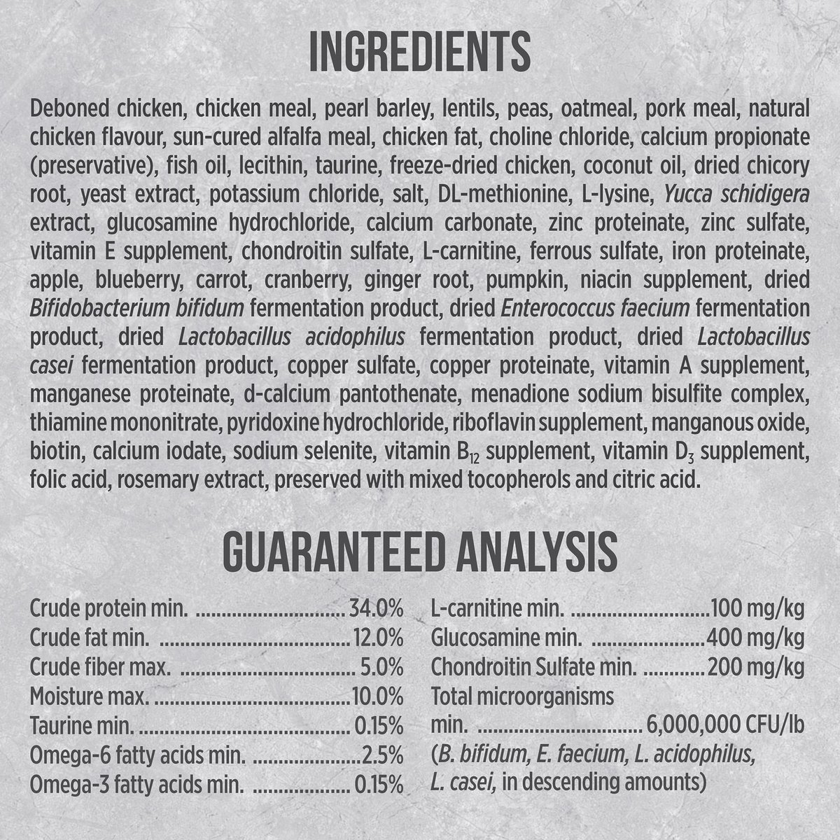 • Higher levels of glucosamine and chondroitin support hip and joint health.