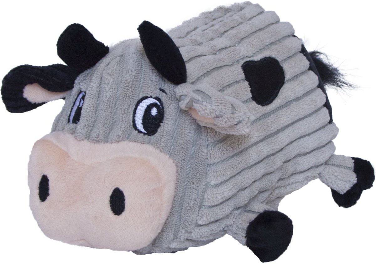 - Adorable barnyard cow design makes the perfect addition to your dog’s toy collection.