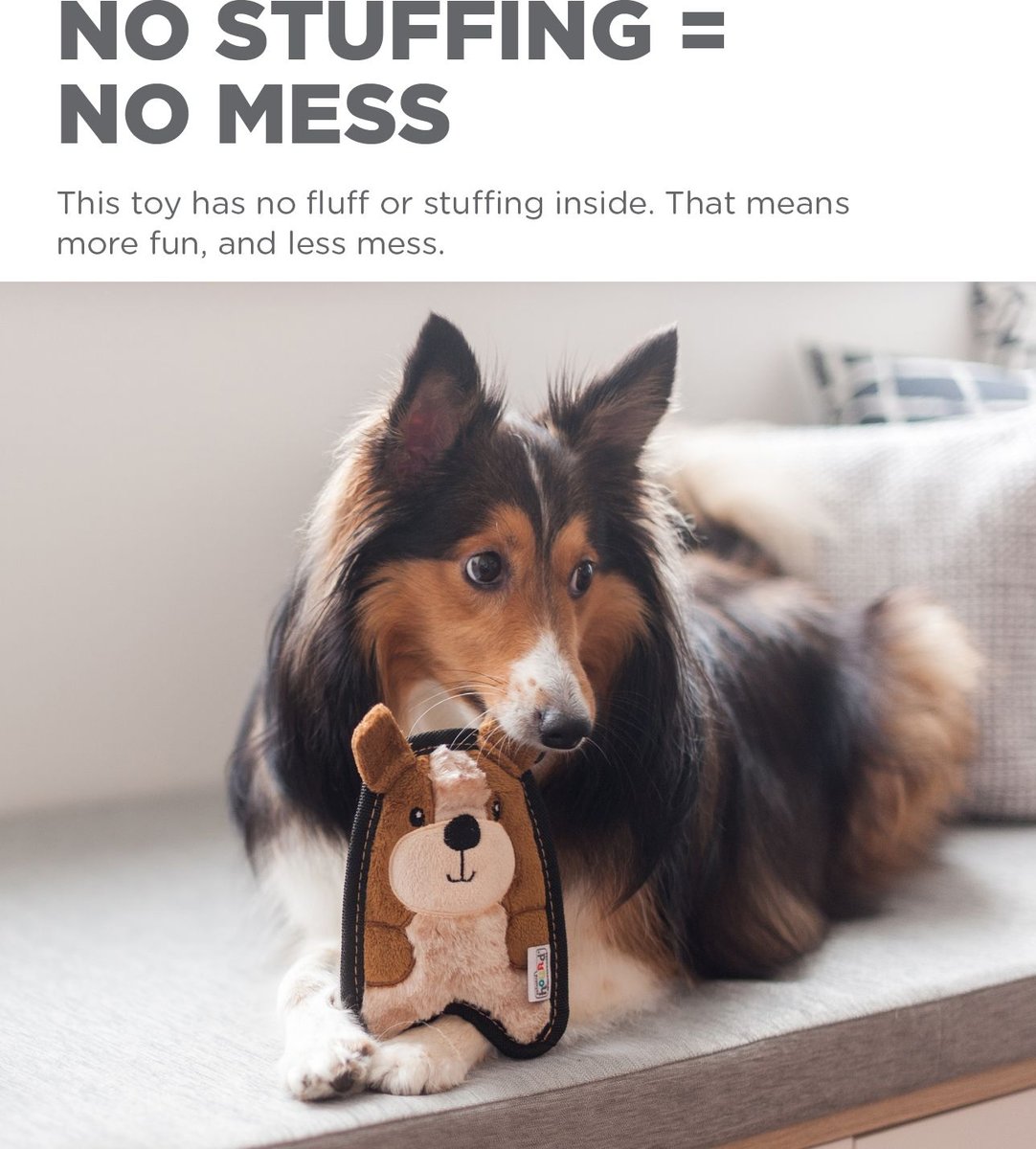• Contains no stuffing, so there’s no mess to clean up if he does manage to get through the fabric.