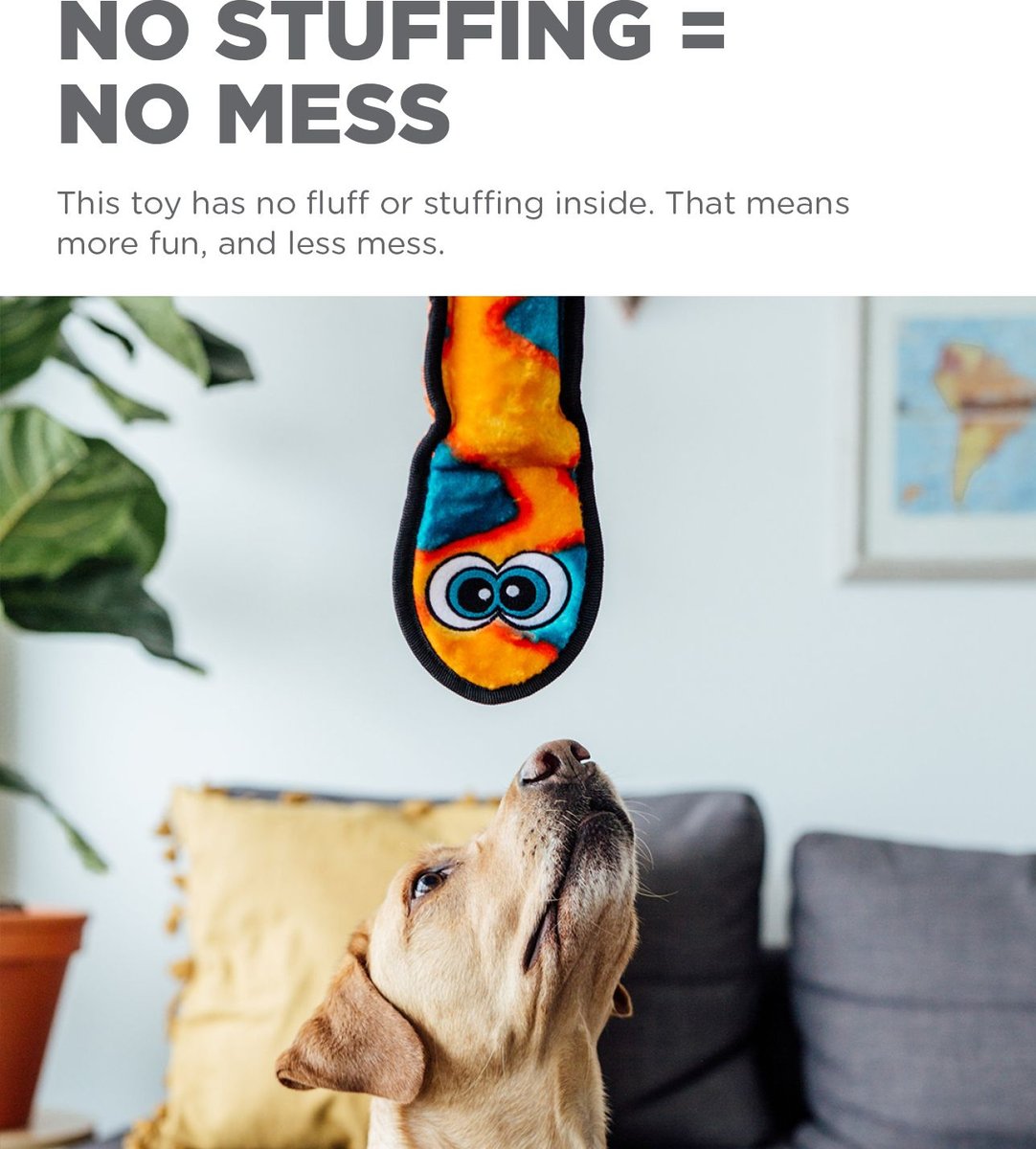 - Contains no stuffing, so there’s no mess to clean up if he does manage to get through the fabric.