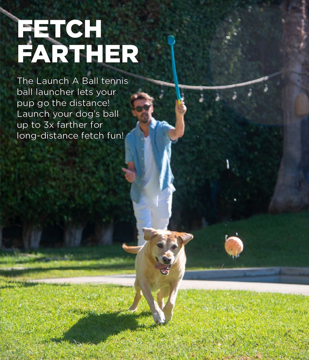 • The tennis ball launcher throws the ball (sold separately) farther for long-distance fetch.