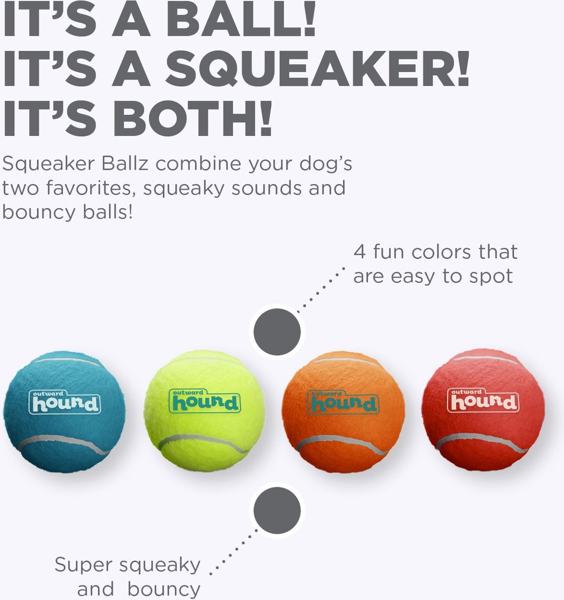 - Squeaky, fun fetch toy combines your dog’s favourites—a tennis ball and a squeaky toy—into a single exciting fetch toy.