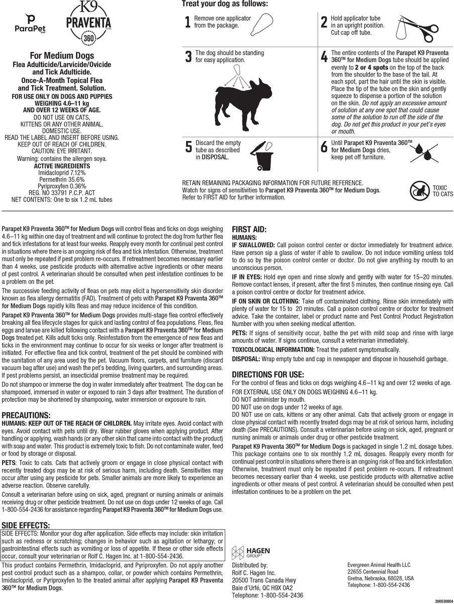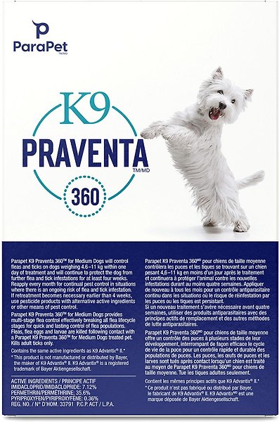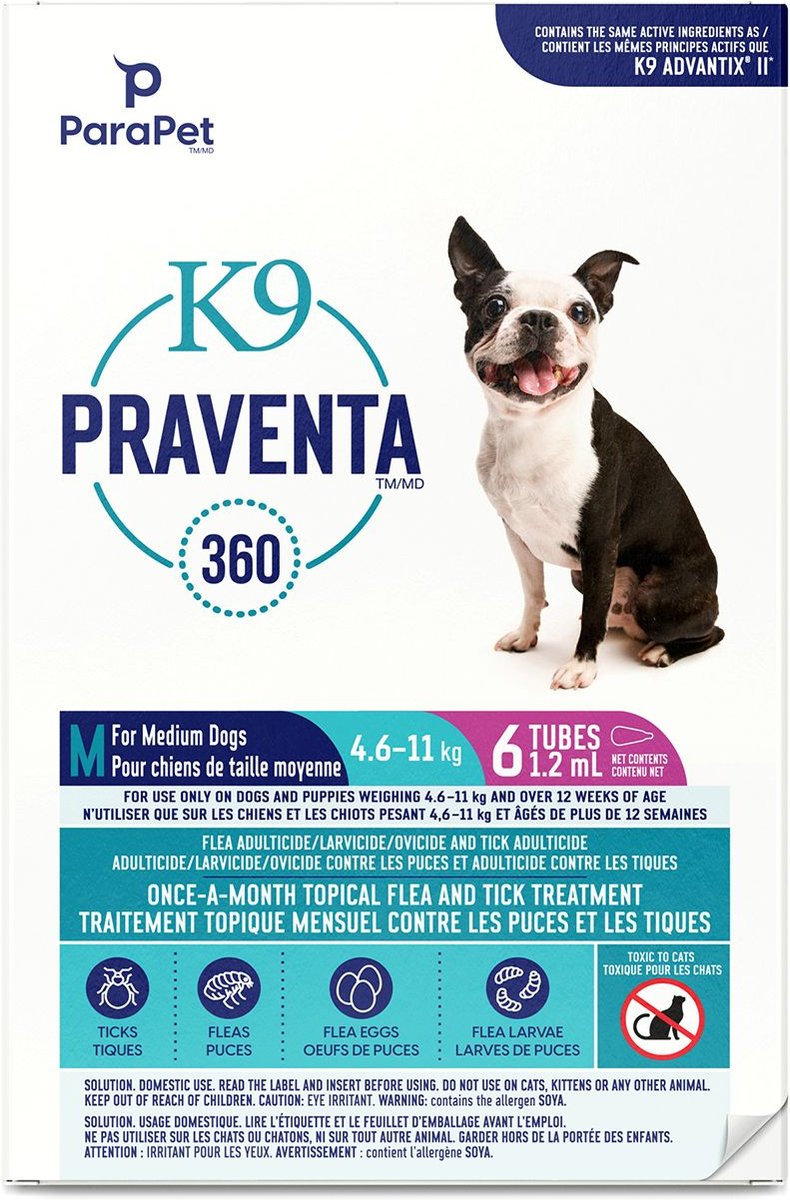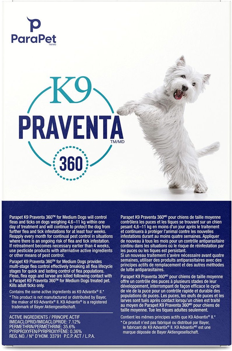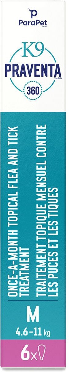 Parapet K9 Praventa 360 Flea & Tick Treatment for Dogs, 4.6-11 kg, 6 count