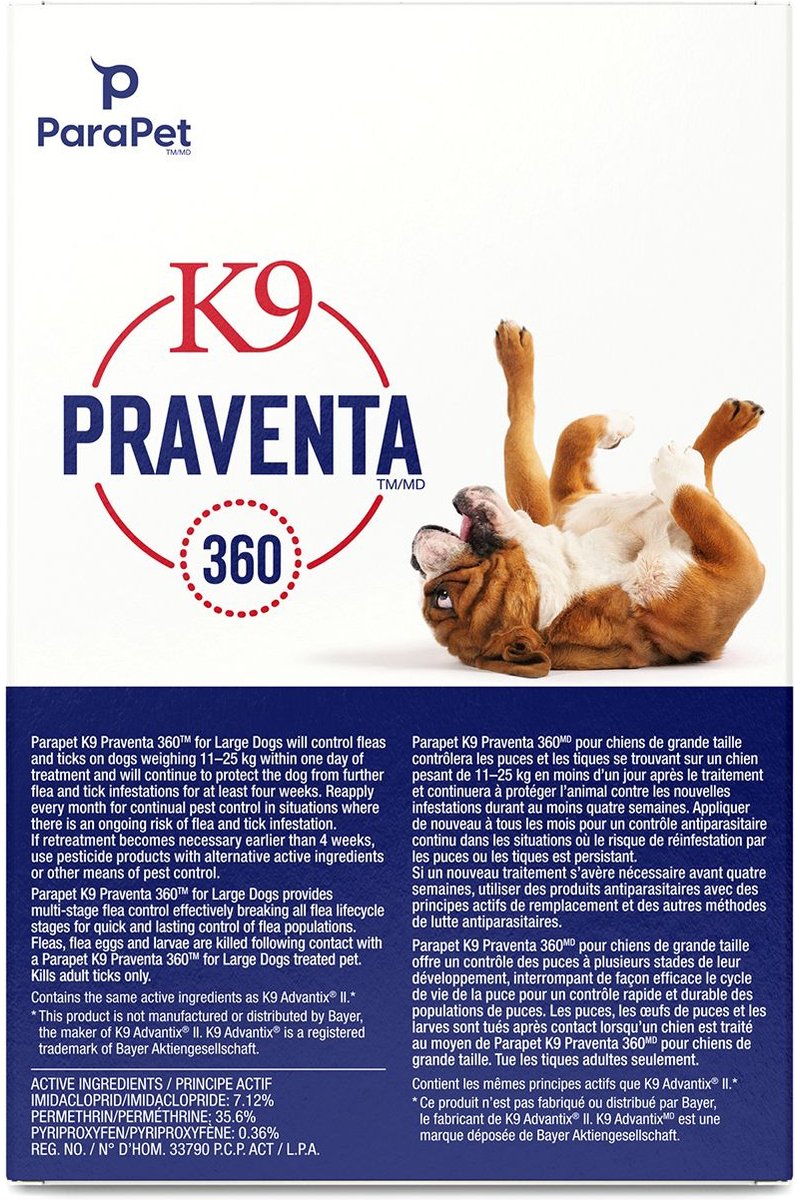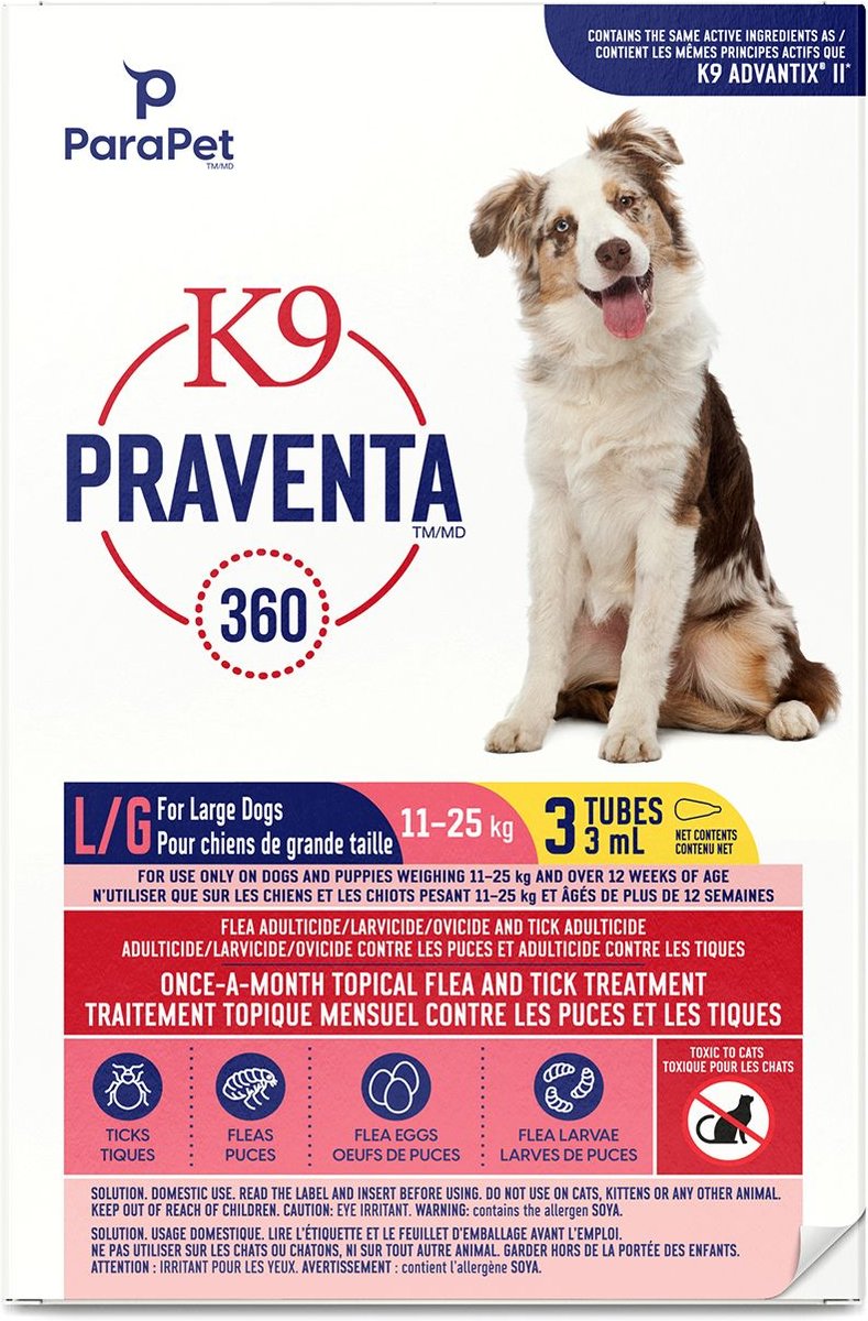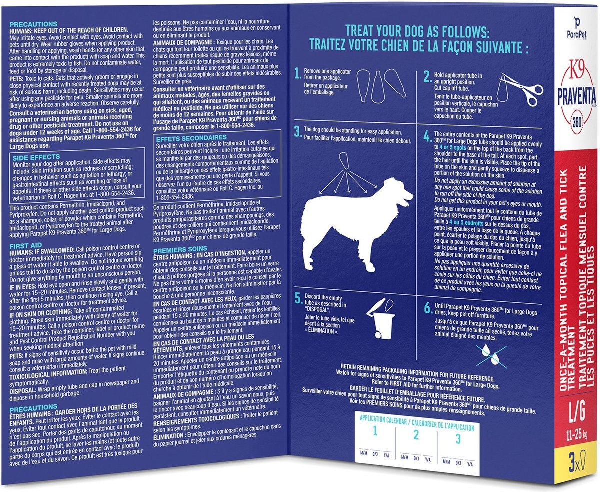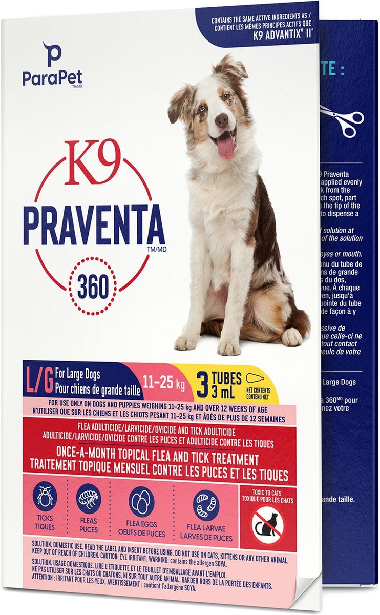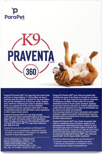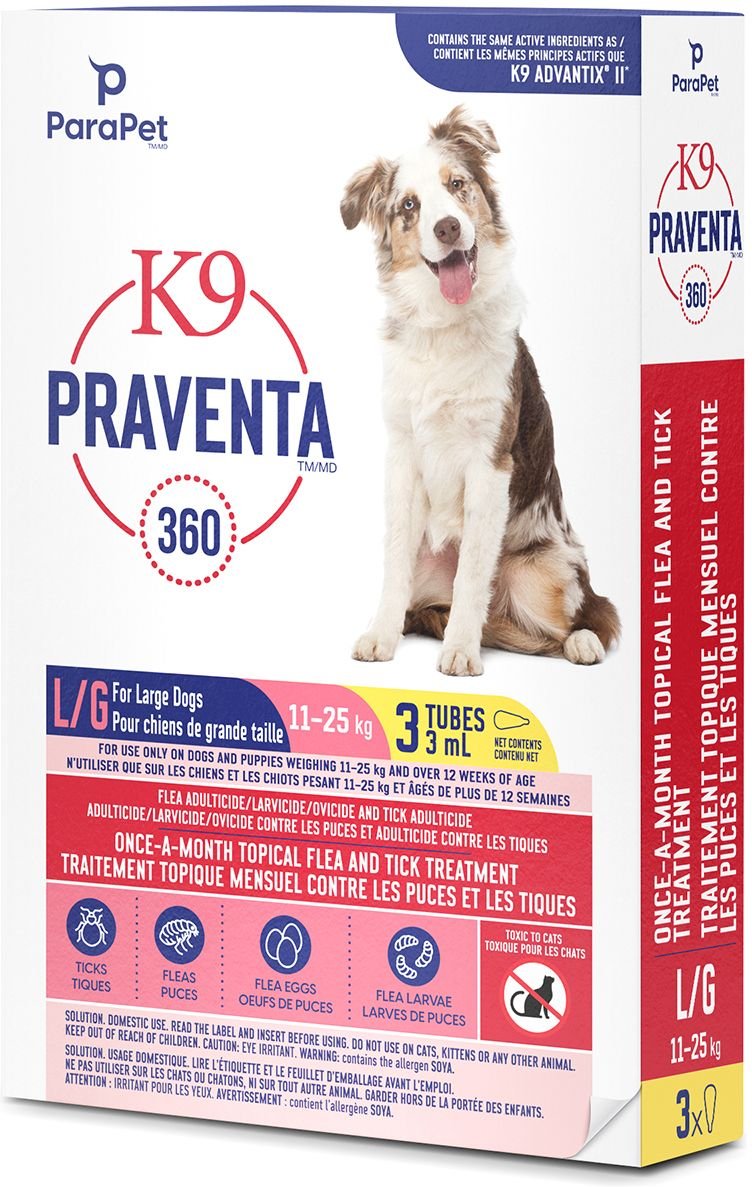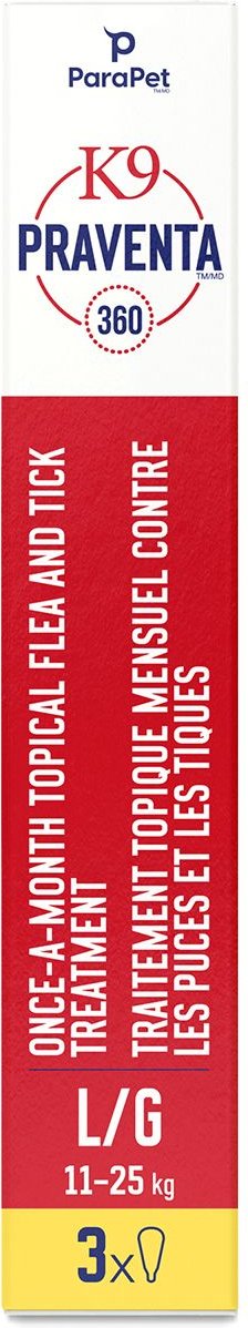 Parapet K9 Praventa 360 Flea & Tick Treatment for Dogs, 11-25 kg, 3 count