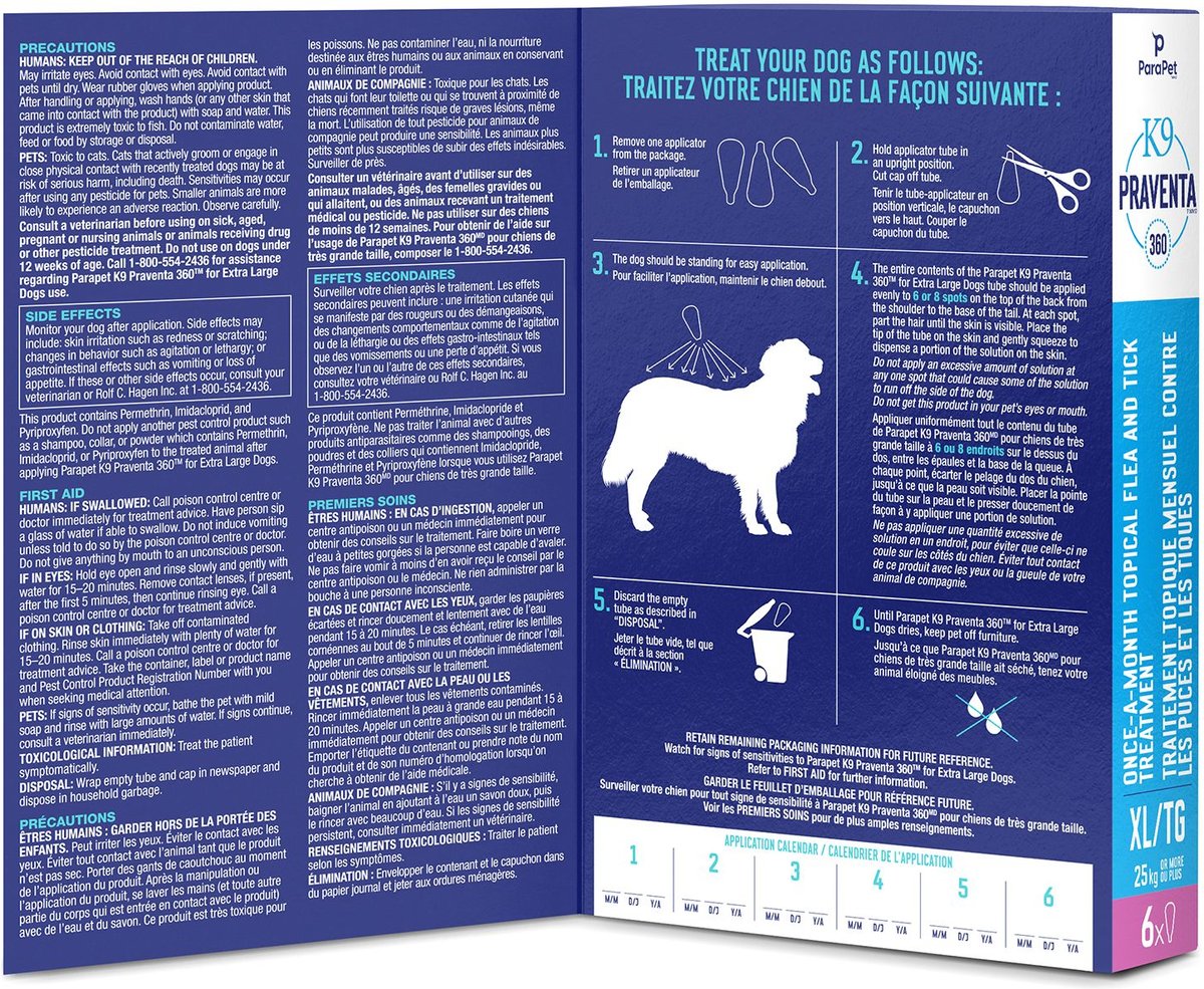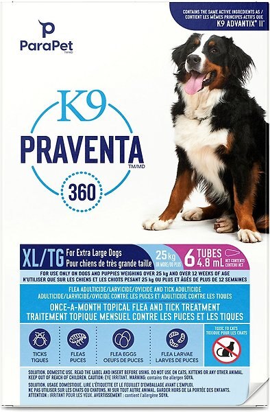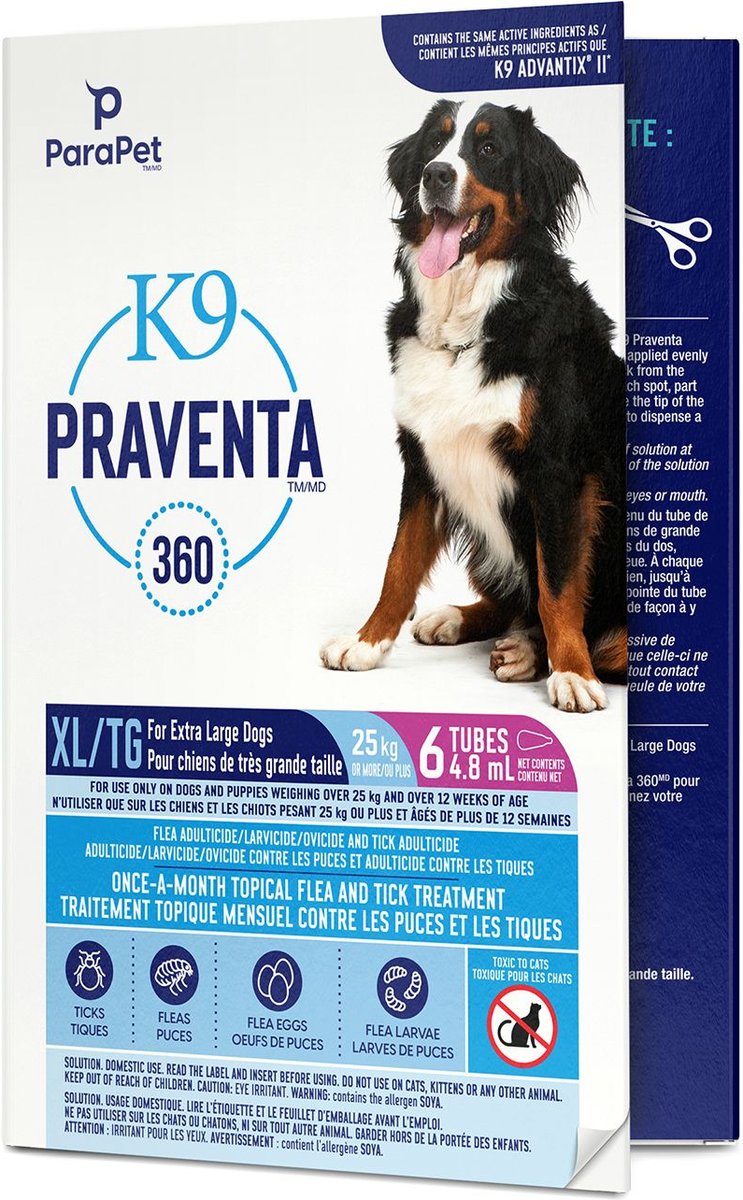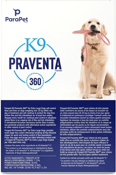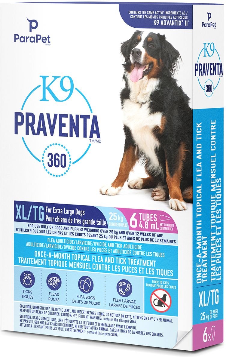 Parapet K9 Praventa 360 Flea & Tick Topical Treatment for Dogs, Over 25 kg, 6 count