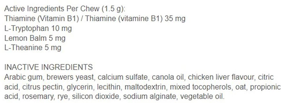 These chews are intended for cats only. The "Pet Naturals Calming Dog & Cat Chews" can be used for dogs as well as cats.