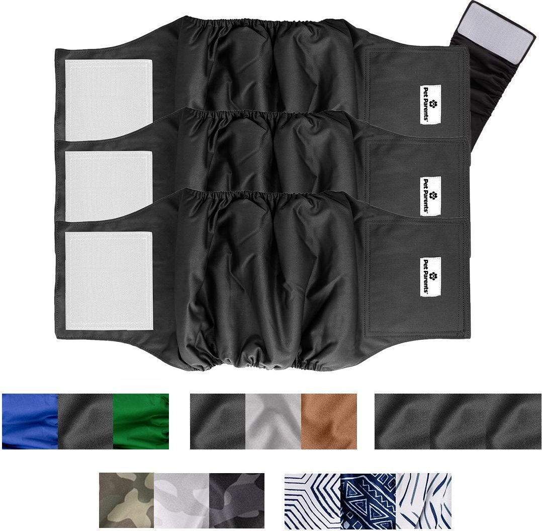 Pet Parents Belly Band Washable Male Dog Wrap + Extendrs, Black, Large: 20 to 25-in waist