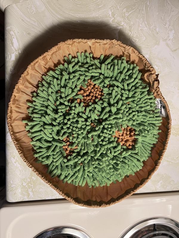 Murphy, my 16-year-old JRT mix, absolutely loves this snuffle mat. He doesn’t wag his tail very often anymore, but when he’s “hunting” something, his little nubby tail moves - and when I put this on the floor in front of him, that nubber wiggles every time. Murphy doesn’t hear or see well, has no teeth, and isn’t the most stable on his feet, so he really relies on his nose. This mat is perfect for him. It keeps him engaged, gives him a job to do, and lets him use his strongest sense in a safe, gentle way. It’s also been great as a distraction when I take my younger dog for a walk, and on days when it’s too hot or too cold for our normal walks. I don’t use the drawstring feature, but it looks solid and well made. If you have a senior dog - or any dog who loves to sniff - this is a wonderful enrichment option. Highly recommend.