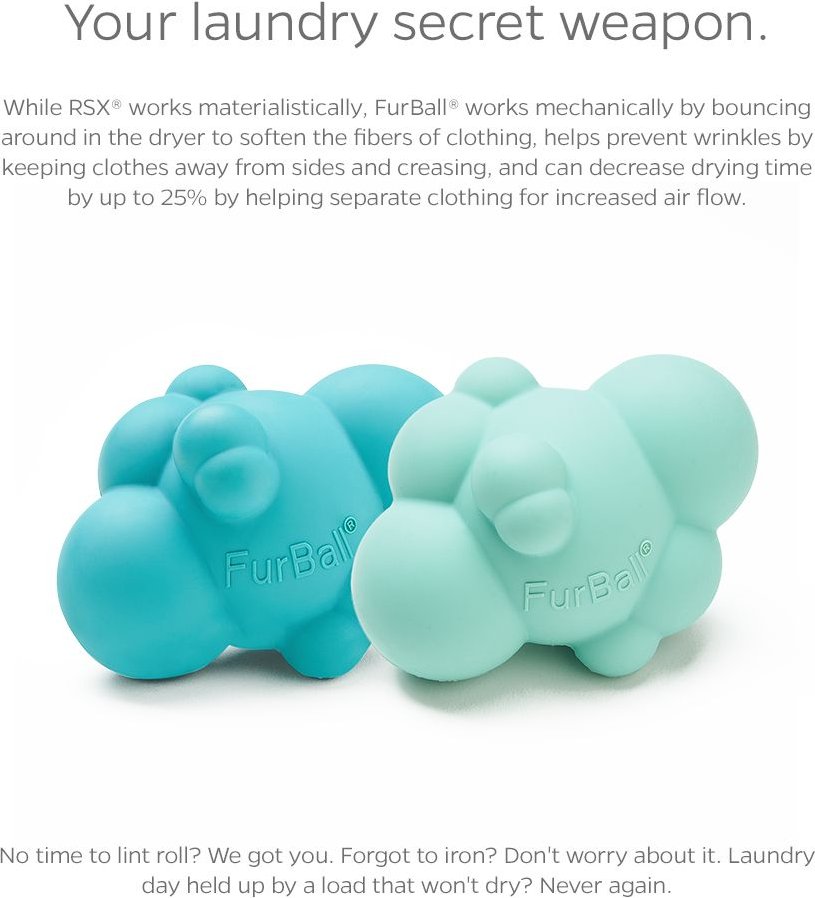 • Can be used in both the washer and dryer, acting as an agitator to scrub away dirt, debris, and fur in the washer, and separating clothes and repelling hair in the dryer.