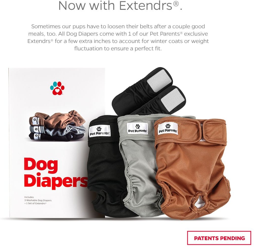 Pet Parents Washable Male & Female Dog Diapers + Extendrs, Natural, X-Small: 4 to 10-in waist