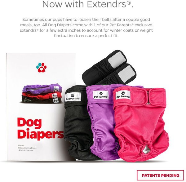 Pet Parents Washable Male & Female Dog Diapers + Extendrs, Princess, X-Small: 4 to 10-in waist