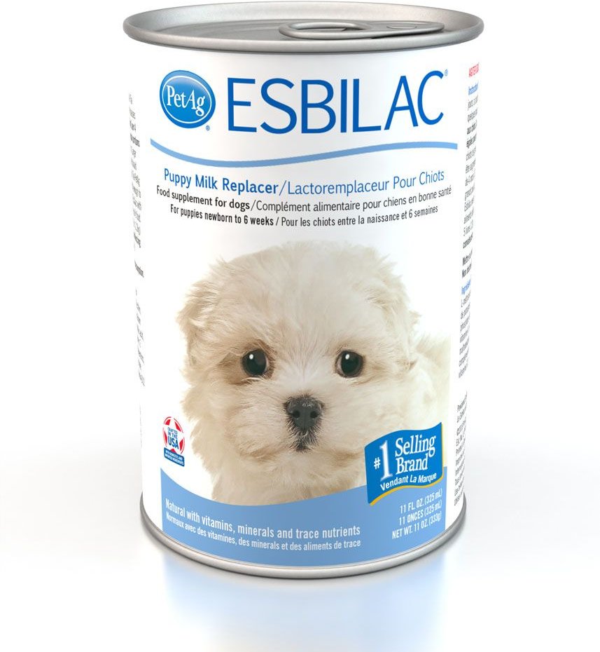 All puppies should receive their mother’s milk for at least 2 days, if possible. The colostrum milk gives extra nutrition and temporary immunity against some diseases. Warm Esbilac to room or body temperature. Feed puppies 2 tablespoons per 4 ounces of body weight daily. Divide the daily feeding amount into equal portions for each feeding. Puppies’ needs will vary and this amount may have to be increased or decreased, depending on the individual. Small and/or weak puppies should be fed every 3 to 4 hours. Larger and/or older puppies can do well being fed every 8 hours. Weigh the puppies daily to assure adequate feeding. Consult your veterinarian for additional advice. When puppies are old enough to lap, begin offering Esbilac in a shallow container. During the 6th week, mix Esbilac with Esbilac 2nd Step Puppy Weaning Food to allow the puppy to be gradually switched to solid food. Store unopened can in a cool, dry place. Once can is opened, discard if not used within 72 hours. May be frozen in single serving size containers for up to 6 weeks.
