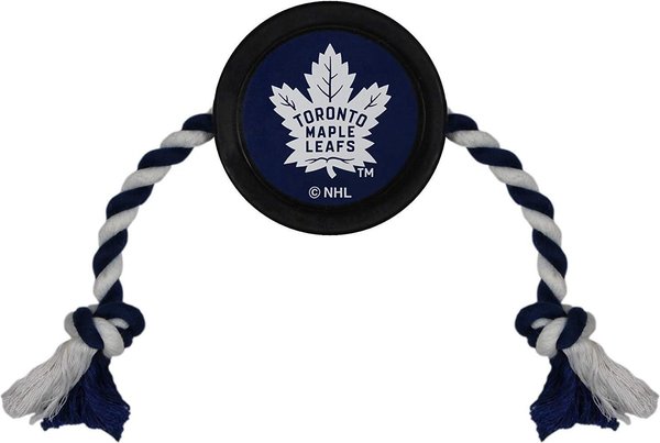 Pets First NHL Hockey Puck Rope Dog Toy, Toronto Maple Leafs