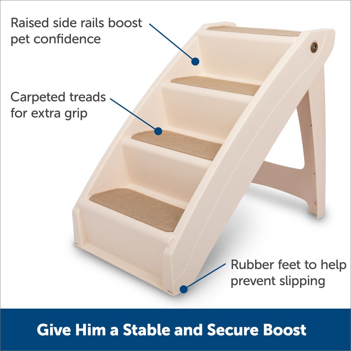 - Convenient folding steps help your dog or cat easily get on and off couches or beds.