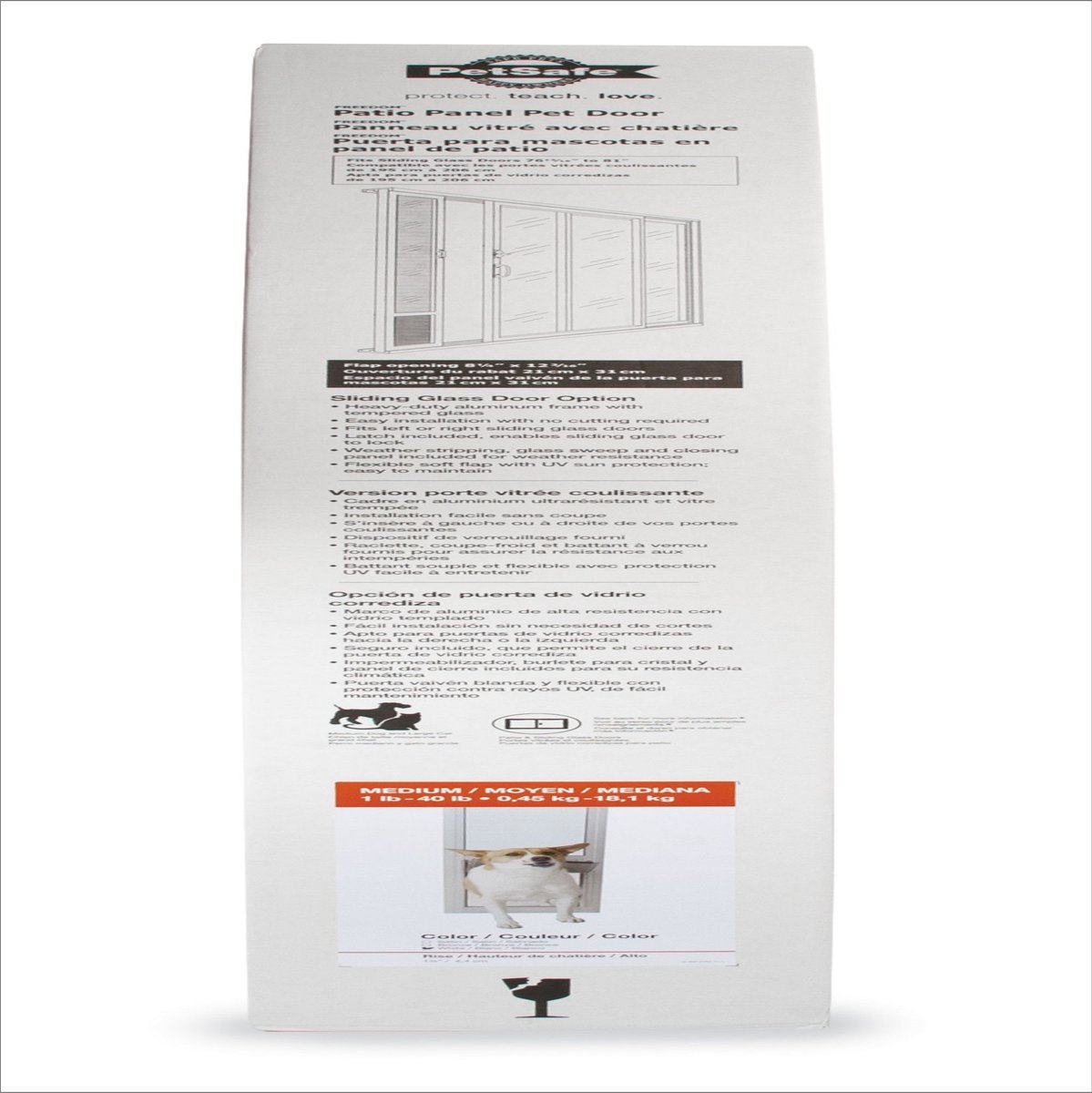 - Allows your pet to come and go as he pleases, through your sliding glass or screen door.