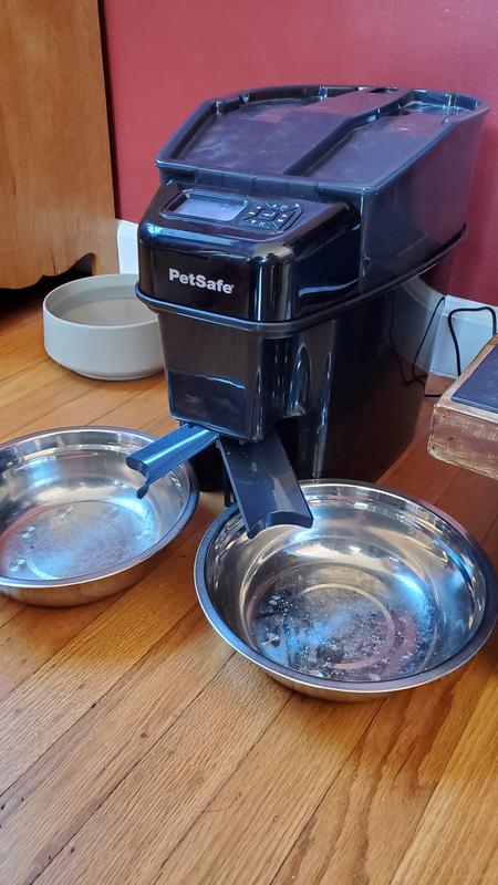 This meal splitter accessory compatible with the PetSafe Healthy Pet Simply Feed Programmable Dog & Cat Feeder and the PetSafe Smart Feed 2.0 Wifi-Enabled Automatic Dog & Cat Feeder (each sold separately). Both feeders have multiple programming options.