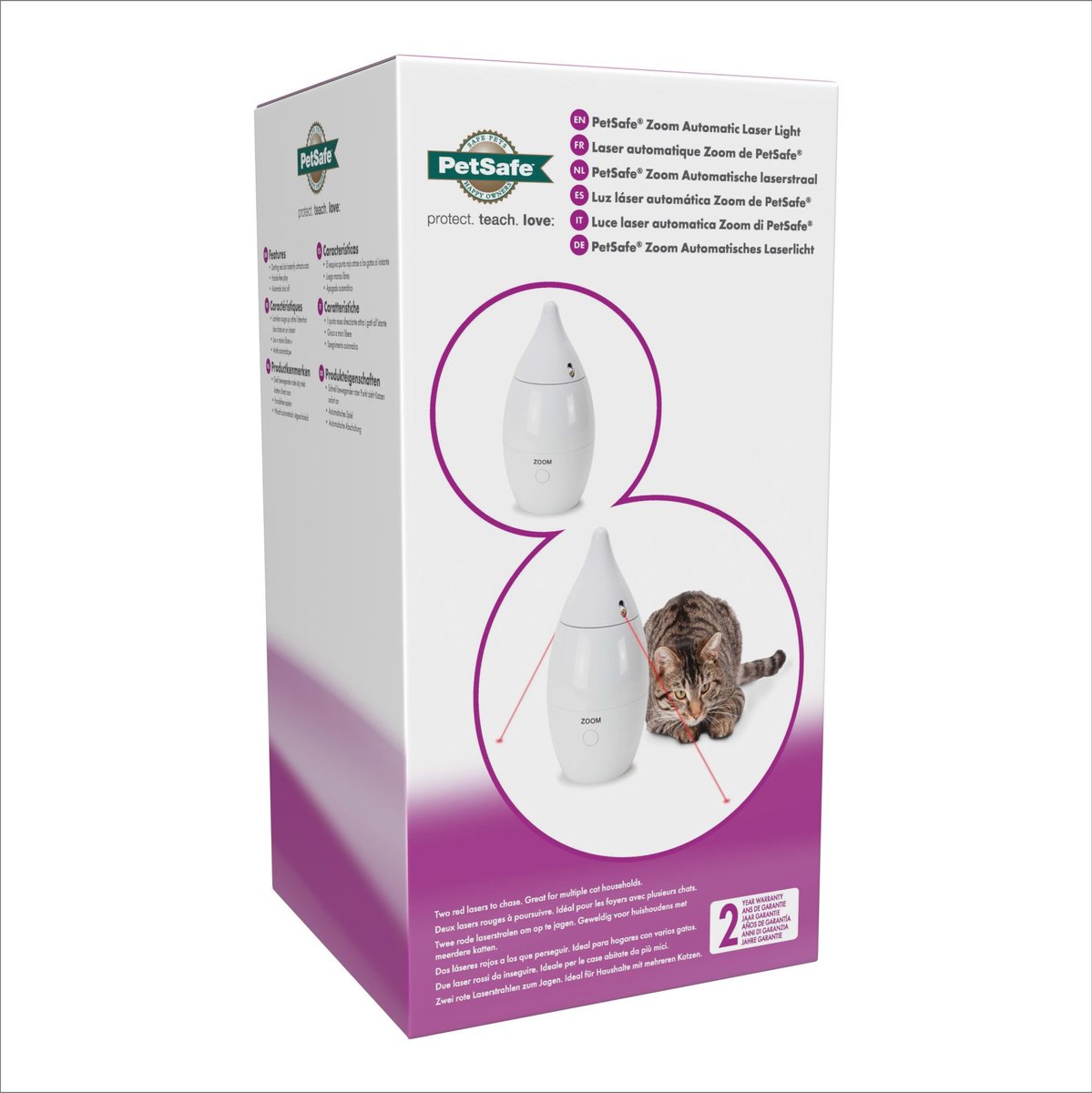 To turn this toy on, press the On/Off button once and watch the fun begin. The Zoom automatically shuts off after 15 minutes to prevent cats from being over-stimulated and to keep the thrill of the chase fresh.