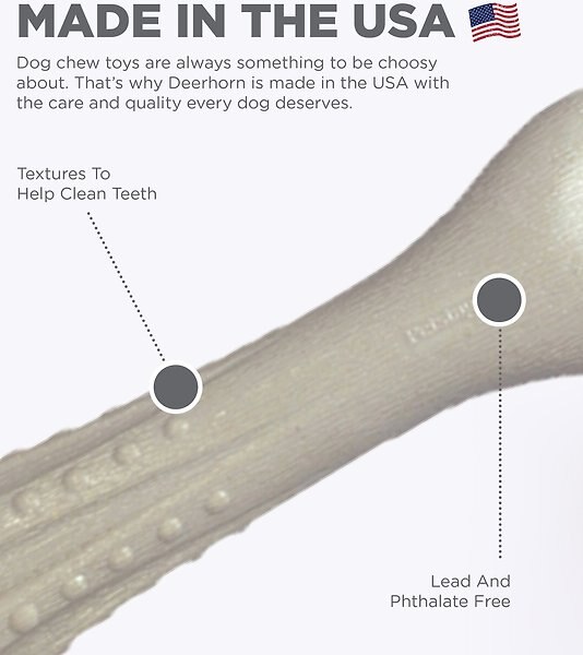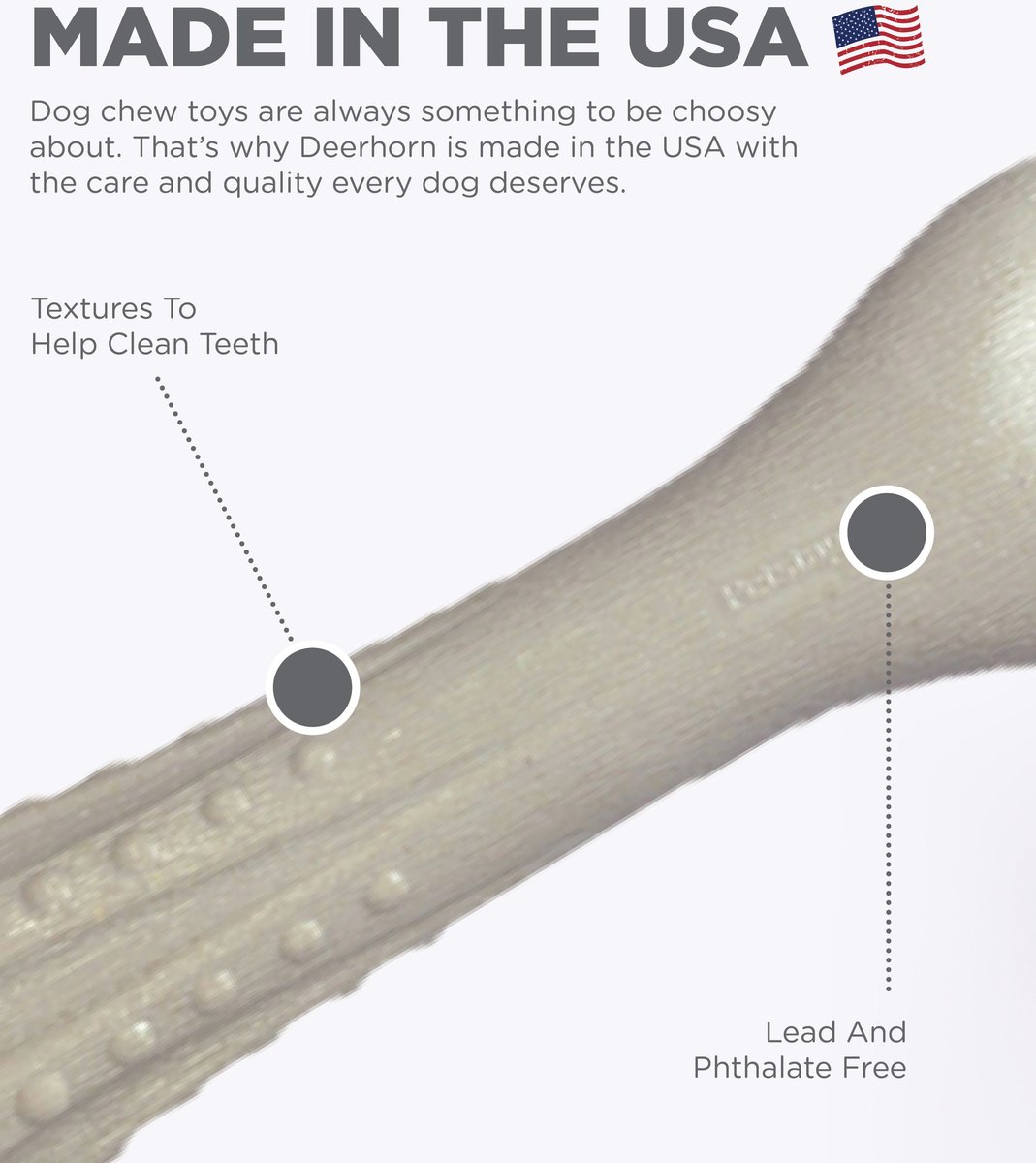 • Deerhorn dog chew toys are made in the USA with lead and phthalate free materials for your pup’s health and safety.