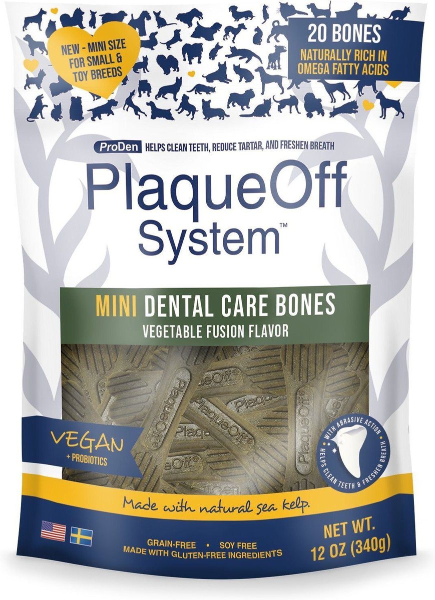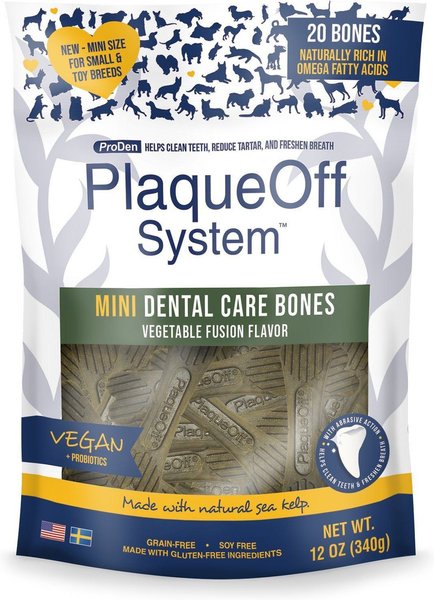 ProDen PlaqueOff System Vegetable Fusion Flavored Mini Dental Bone Dog Treats, 20 count