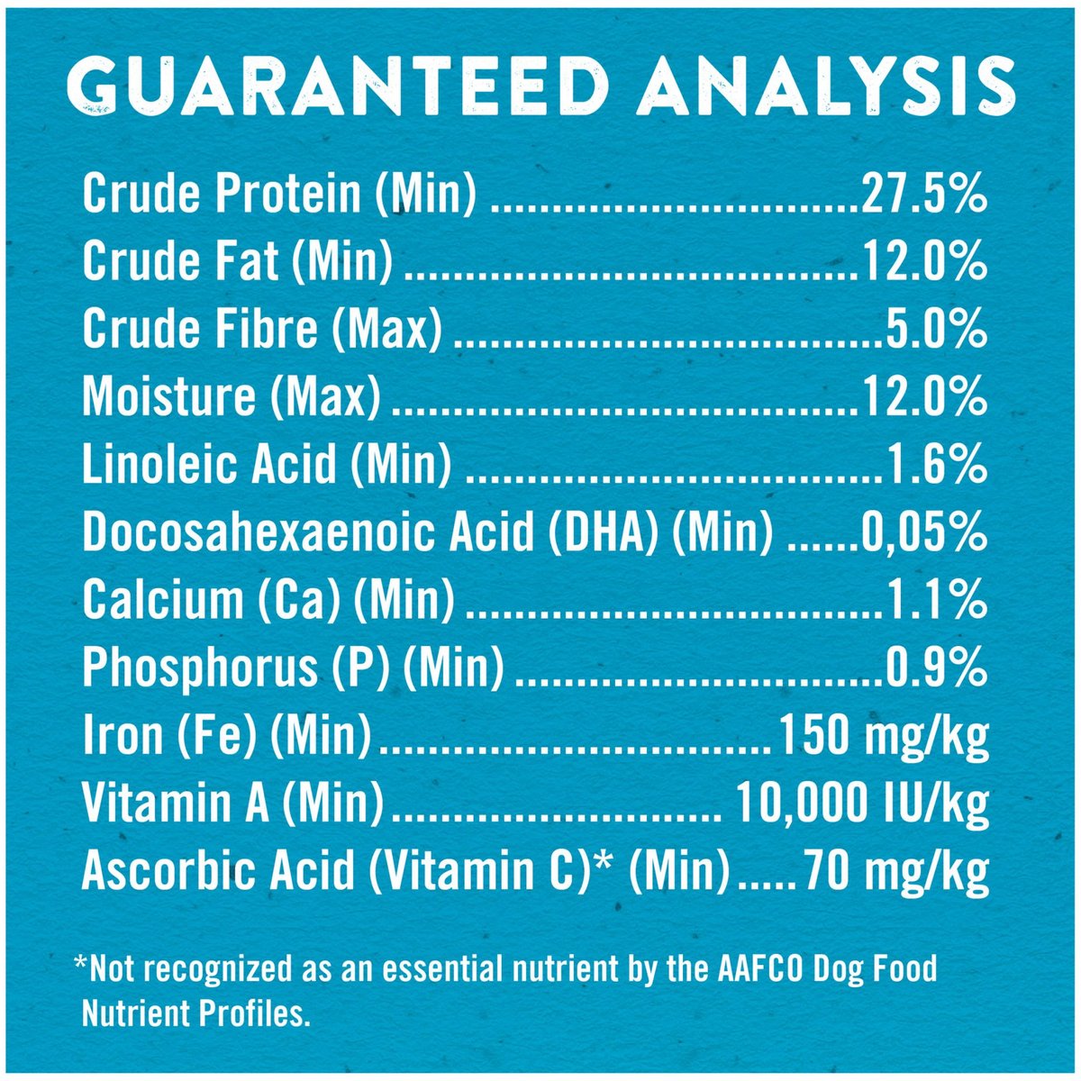 This food is formulated to meet the nutritional levels established by the AAFCO Dog Food Nutrient Profiles for all life stages, including growth of large sized dogs (70 pounds or more as an adult).