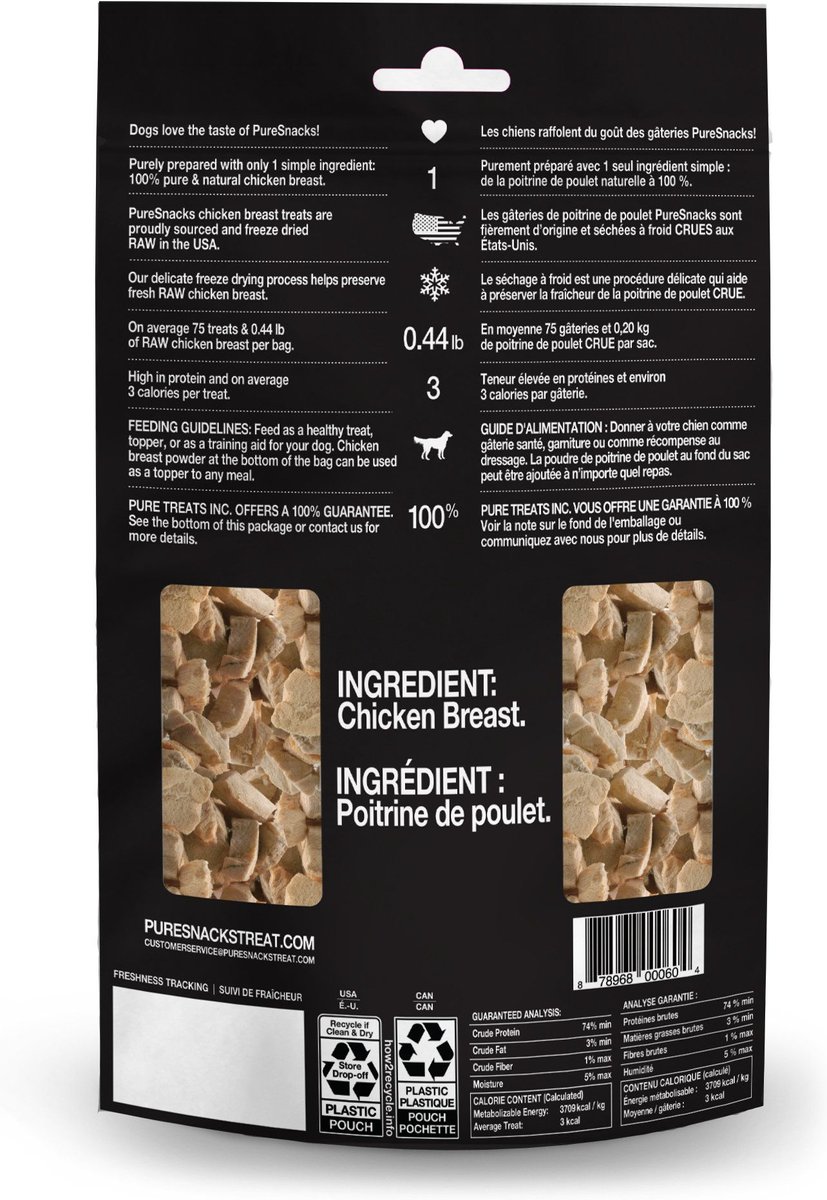 PureSnacks Chicken Breast Freeze-Dried Dog Treats, 56g/1.98-oz bag