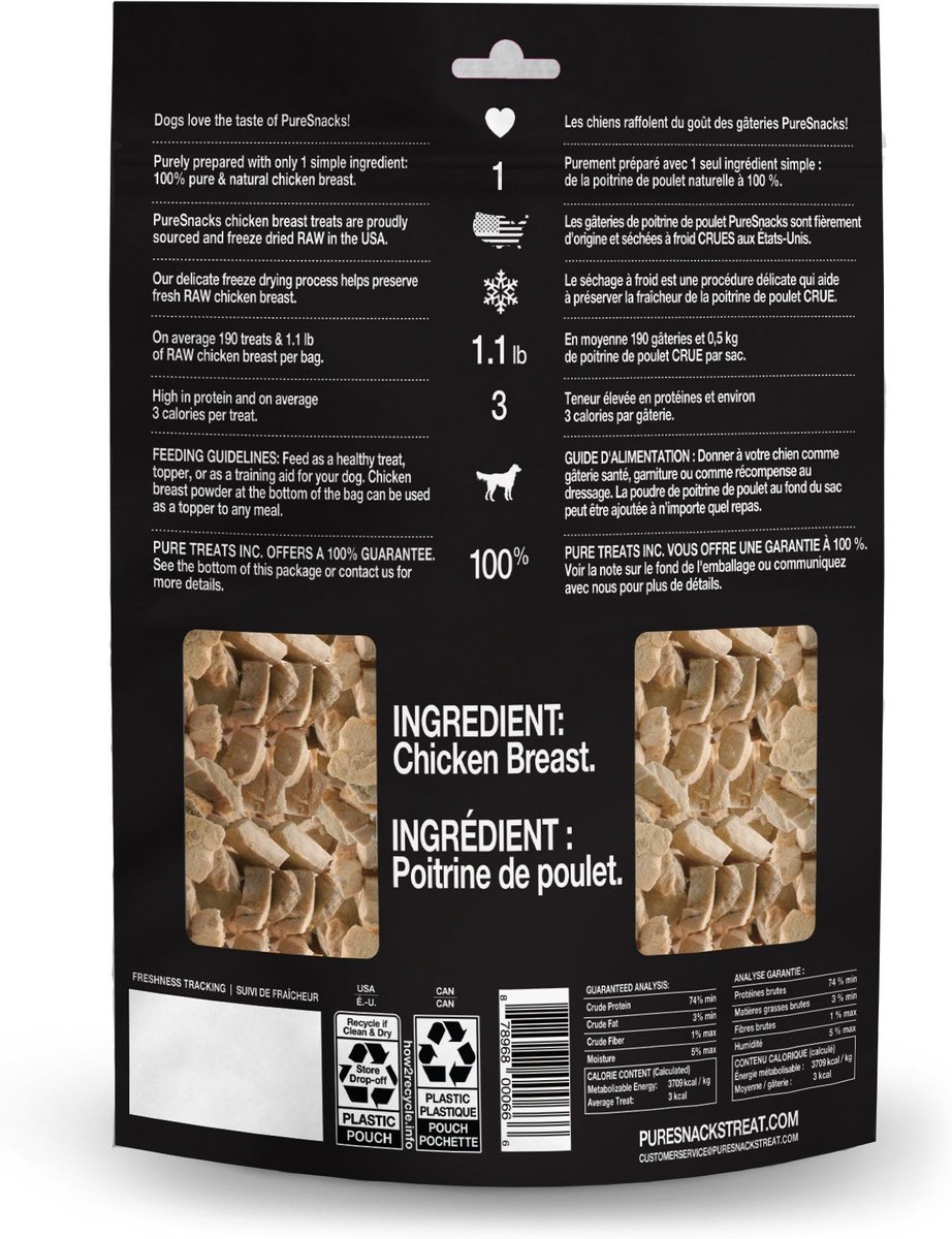 PureSnacks Chicken Breast Freeze-Dried Dog Treats, 140g/4.94-oz bag