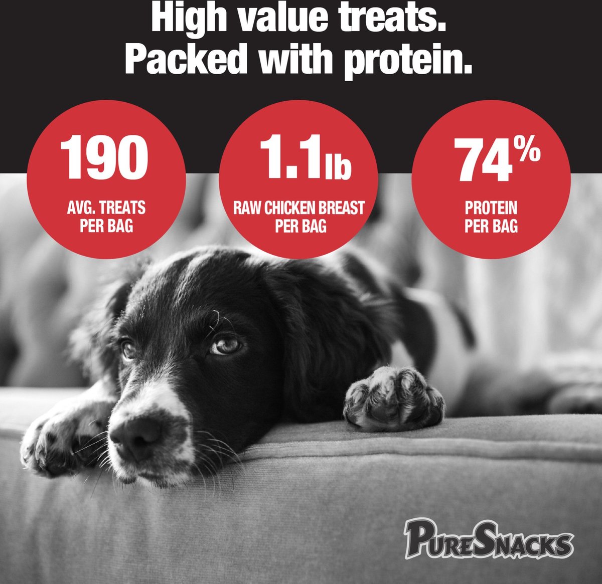 Show your dog you love them by giving them a �pure snack� every day. Go ahead and break them into smaller pieces for puppies or for smaller dogs. If there are crushed treats at the bottom of the bag � that�s the good stuff! Sprinkle it over your dog�s kibble and see how exciting mealtime can be!