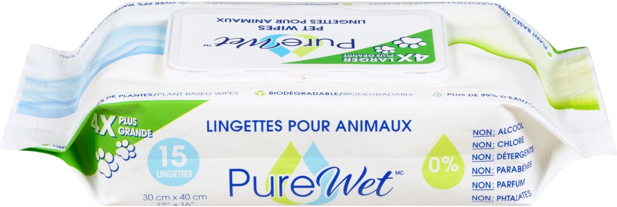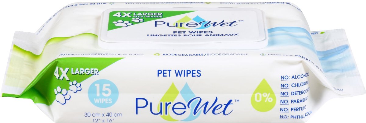 PureWet Plant-Based Biodegradable Extra Large Dog & Cat Wipes, 15 count
