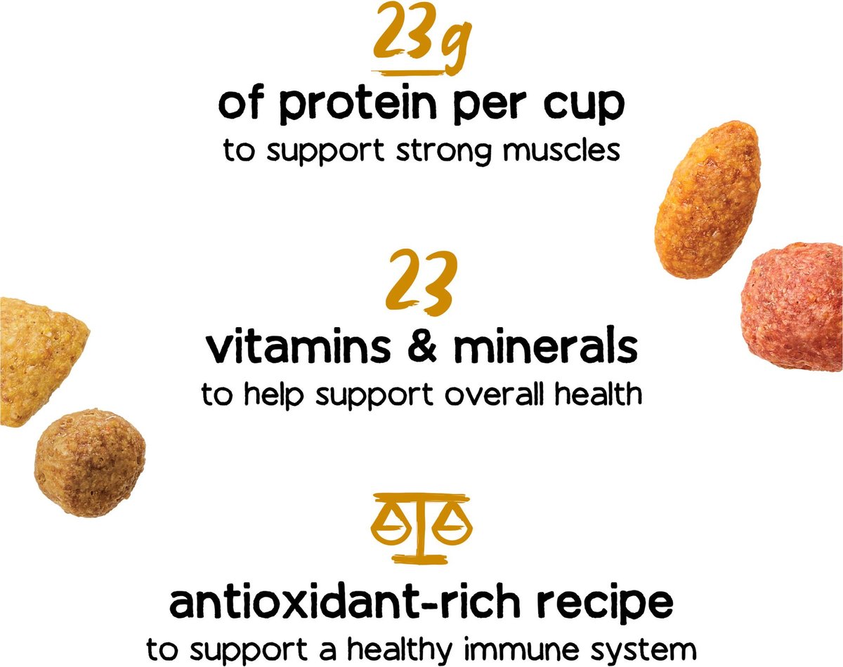 - 23 grams of protein per cup support your best friend’s health.
