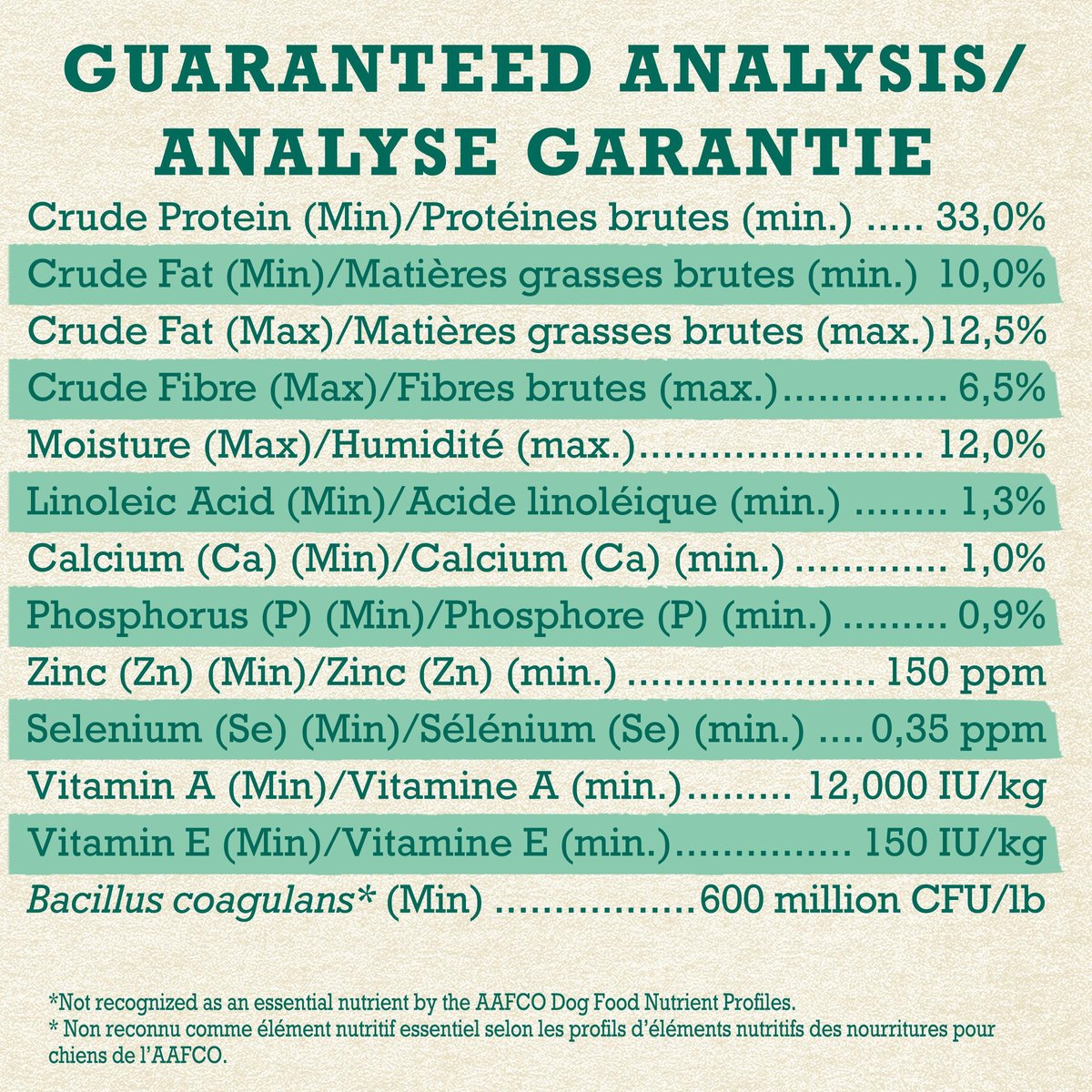 | Bacillus Coagulans* | 600 Million CFU/lb. min |