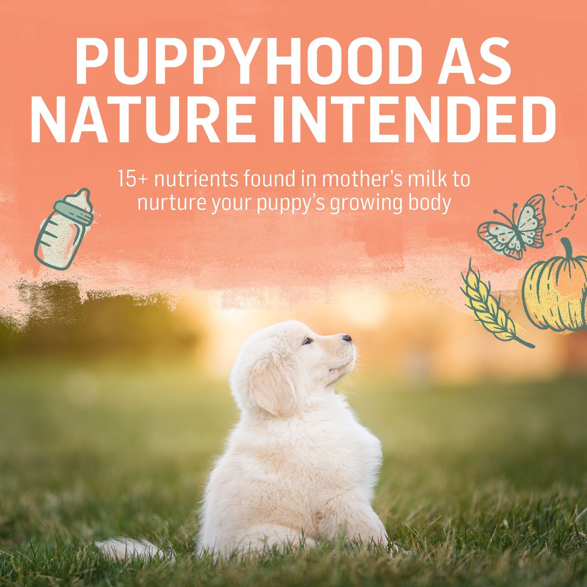 - Natural puppy food with added vitamins, minerals, and nutrients to support your puppy’s healthy development.