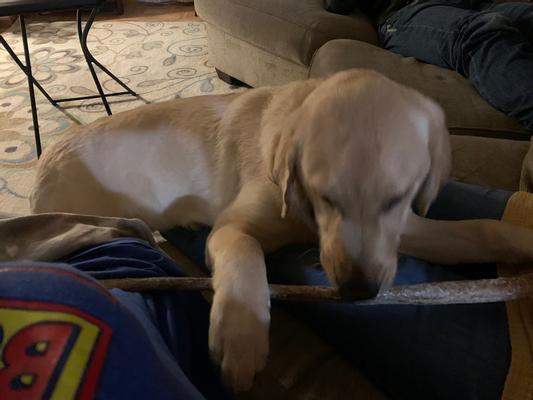 my Remington loves this chew, he is only allowed to chew on anything bigger than his head so this is perfect!! He always carries it around and will smack you with