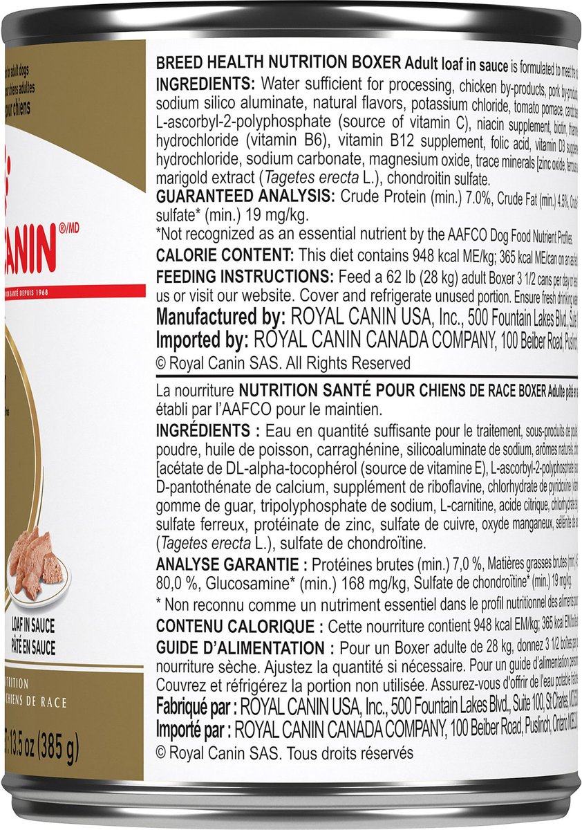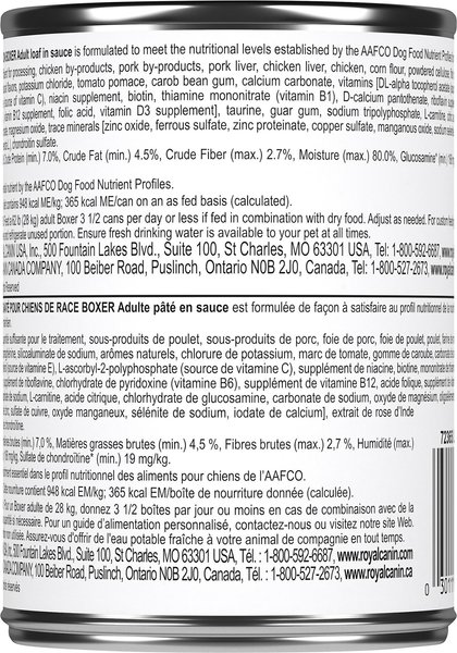 Royal Canin Breed Health Nutrition Boxer Adult Loaf in Sauce Wet Canned Dog Food, 13.5-oz can, case of 12