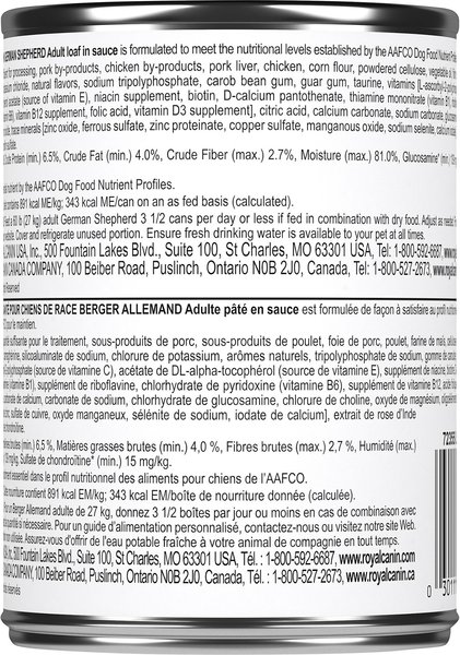 Royal Canin Breed Health Nutrition German Shepherd Adult Loaf in Sauce Wet Canned Dog Food, 13.5-oz can, case of 12
