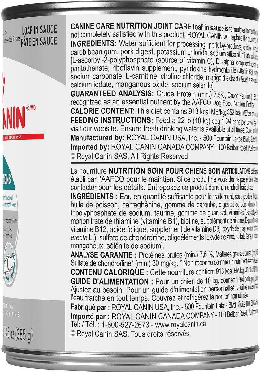 Royal Canin Canine Care Nutrition Joint Care Loaf in Sauce Wet Canned Dog Food, 13.5-oz can, case of 12
