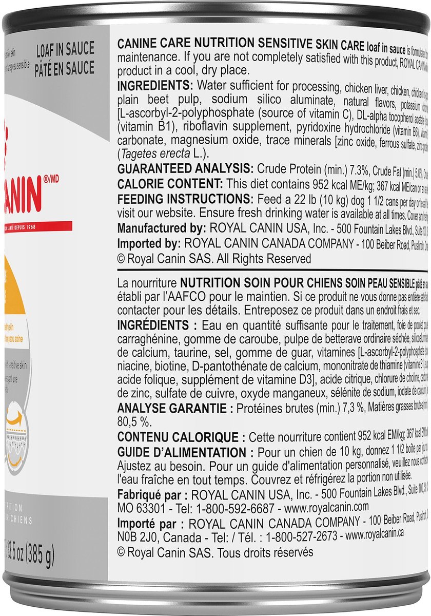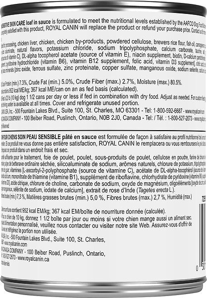 Royal Canin Canine Care Nutrition Sensitive Skin Care Loaf in Sauce Wet Canned Dog Food, 13.5-oz can, case of 12