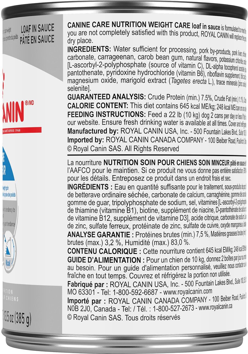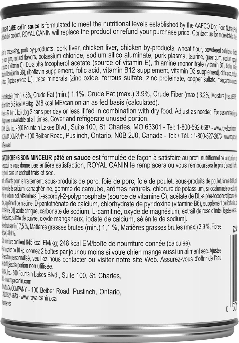 Royal Canin Canine Care Nutrition Weight Care Loaf in Sauce Wet Canned Dog Food, 13.5-oz can, case of 12