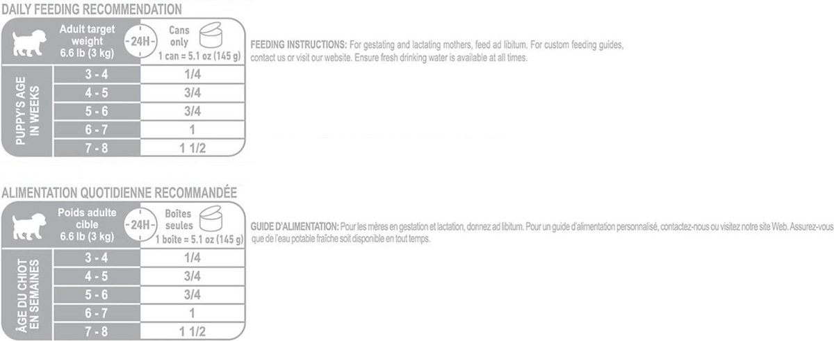 • The palatable mousse’s soft food texture helps transition puppies from nursing to eating puppy food.