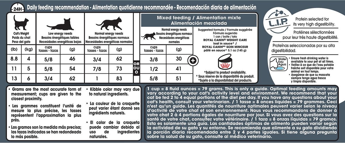 Over 90% of slightly overweight cats fed Royal Canin Weight Care lost weight within two months.