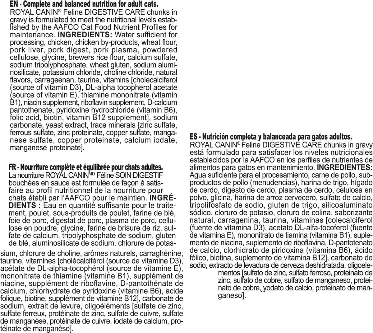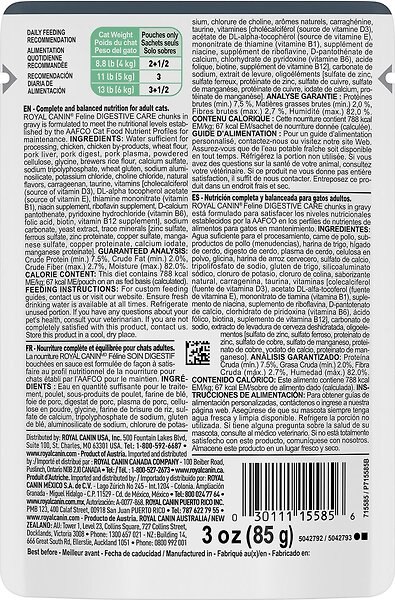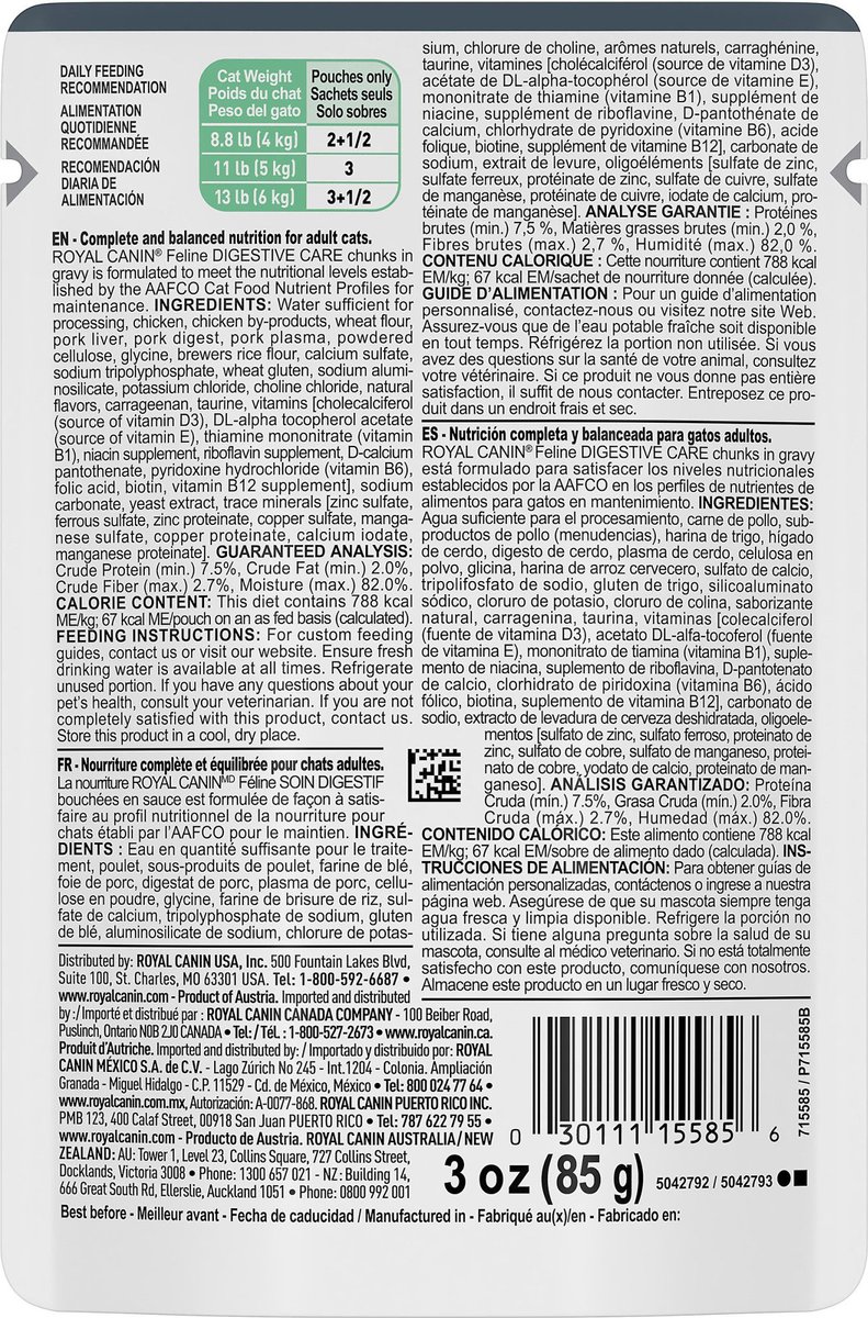 Royal Canin Feline Care Nutrition Digest Sensitive Adult Chunks in Gravy Wet Cat Food, 85-g pouch, case of 12