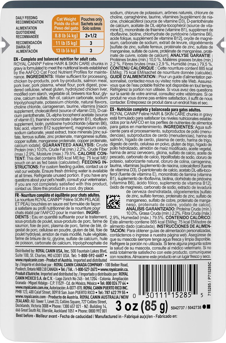 Royal Canin Feline Care Nutrition Intense Beauty Chunks in Gravy Wet Cat Food, 85-g pouch, case of 12