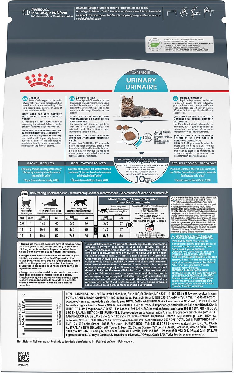 Formulated to promote a healthy mineral content in the urine. Royal Canin Urinary Care dry cat food helps promote urinary health efficiently in as little as 10 days.