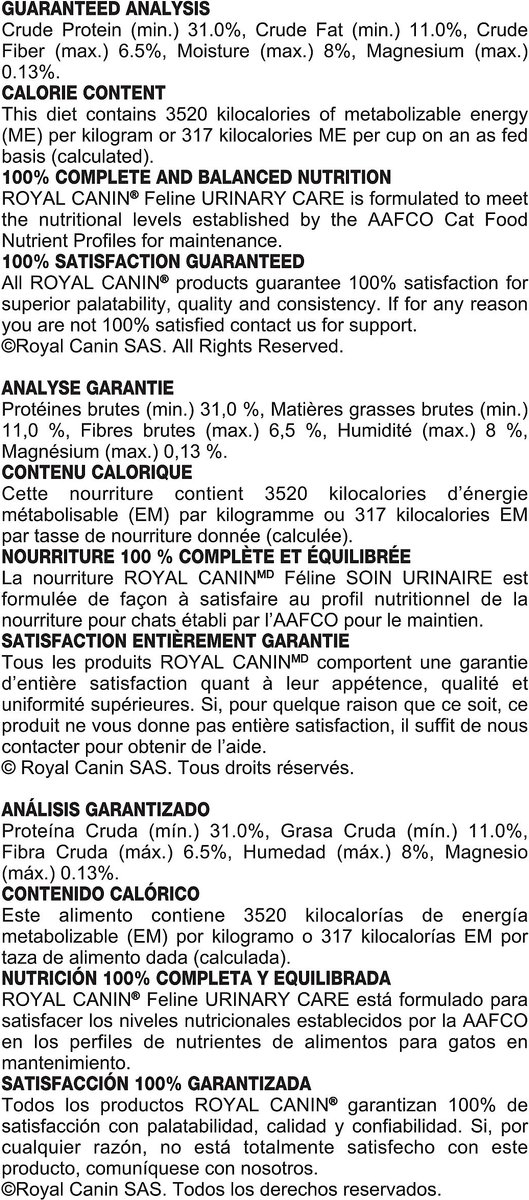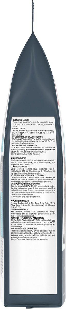 Formulated to promote a healthy mineral content in the urine. Royal Canin Urinary Care dry cat food helps promote urinary health efficiently in as little as 10 days.