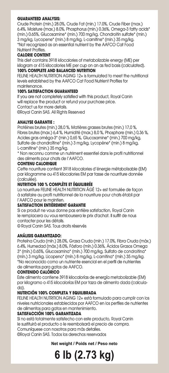 • The perfect complement to Royal Canin Aging 12+ Wet Cat Food or can be served alone for 100% complete and balanced cat nutrition.