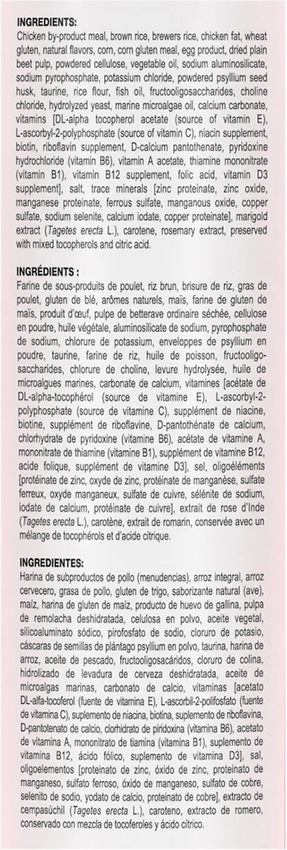 • A combination of prebiotics and highly digestible proteins helps promote a healthy balance of intestinal bacteria for digestive health.