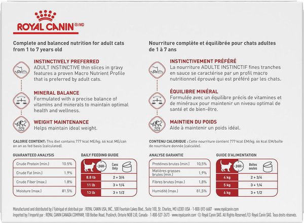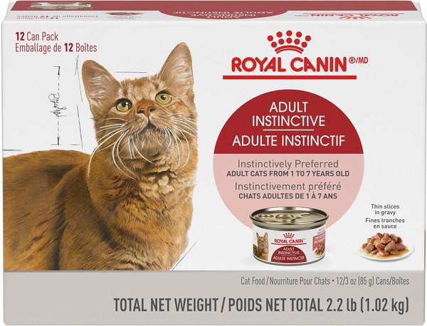 Royal Canin Feline Health Nutrition Adult Instinctive Thin Slices In Gravy Wet Canned Cat Food, 85-g can, case of 12